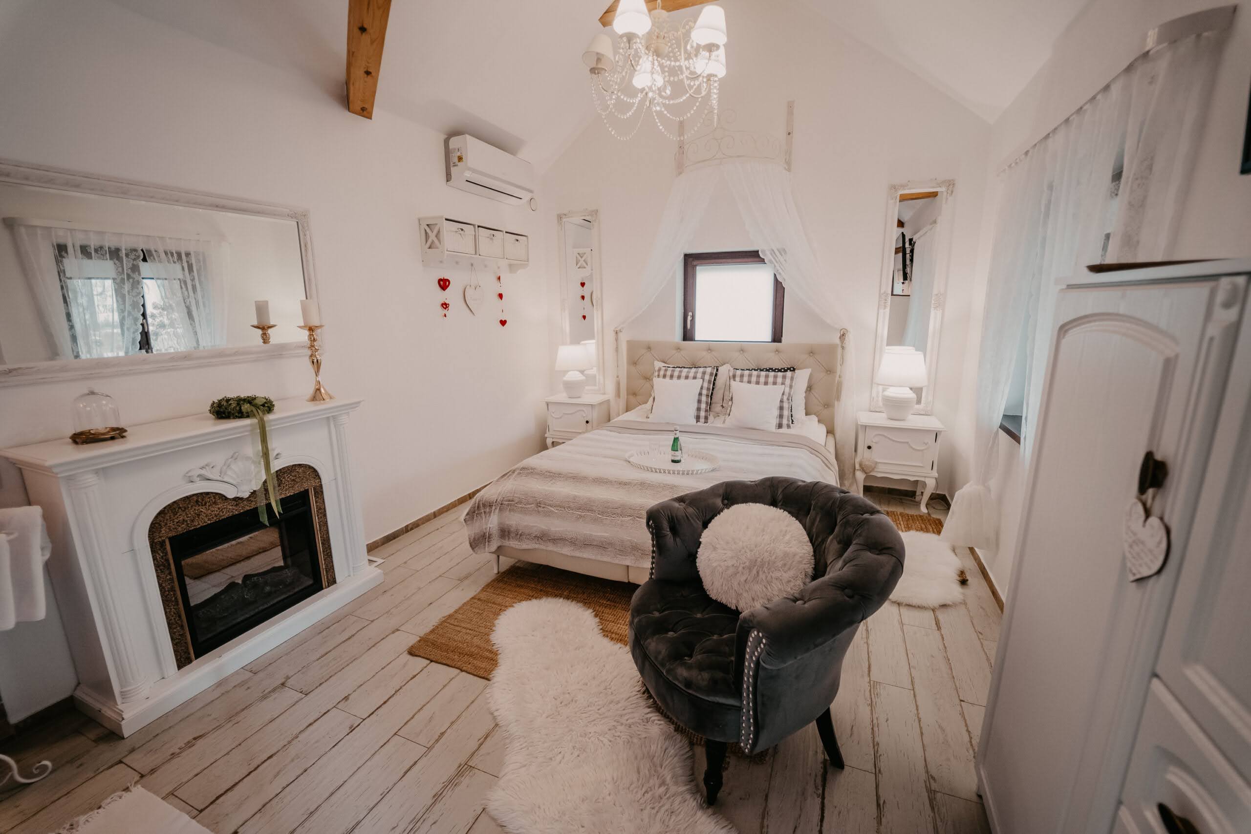 • Romantyczne łóżko małżeńskie z baldachimem 160x200 cm