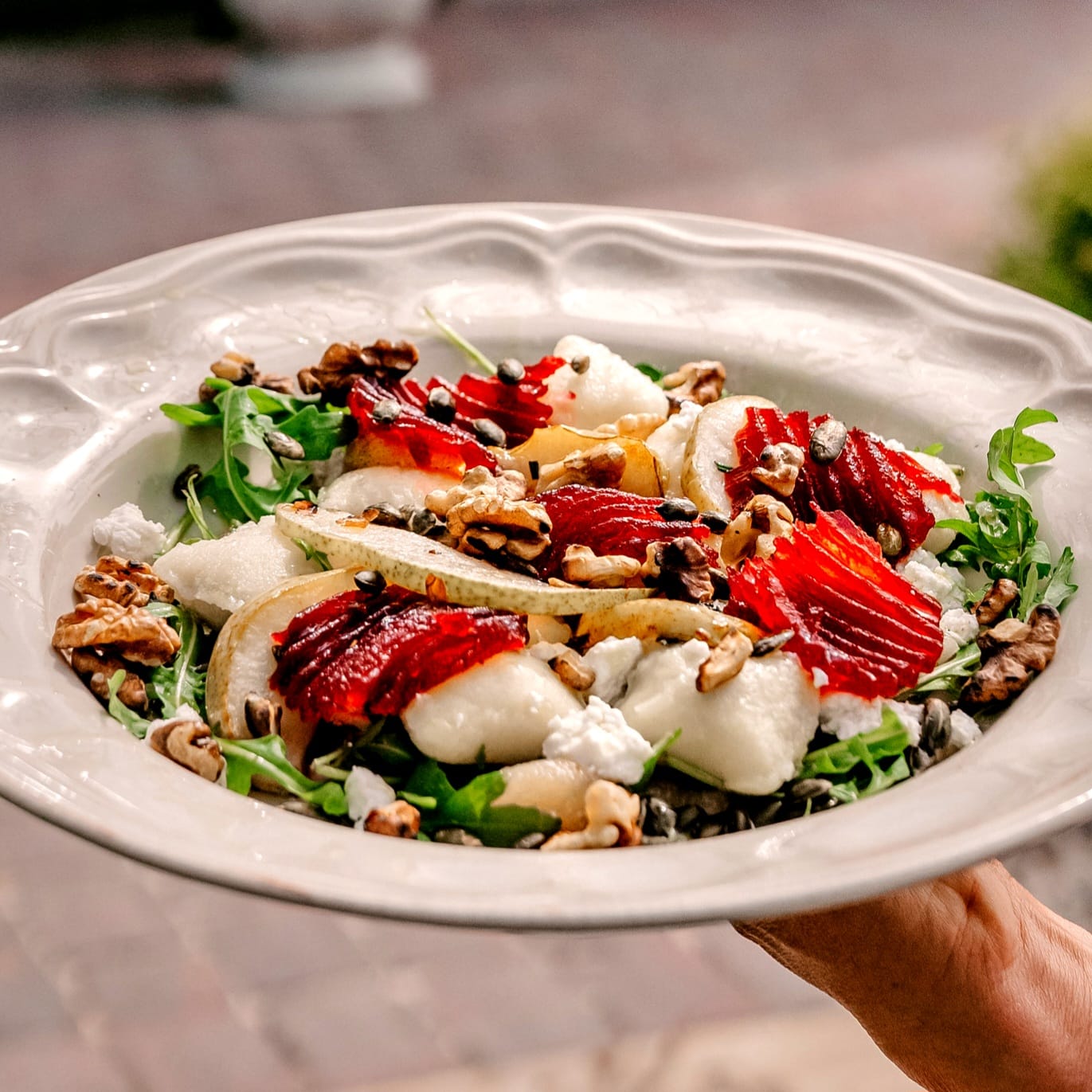 65 złPurée z gruszki i jabłek / ser kozi / piklowane buraki / orzechy włoskie / prażone pestki dyni oliwa truflowa