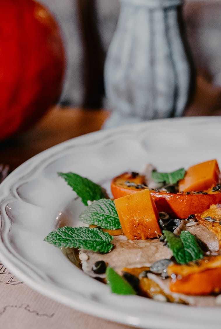 Ravioli orkiszowe z pieczoną dynią (V)